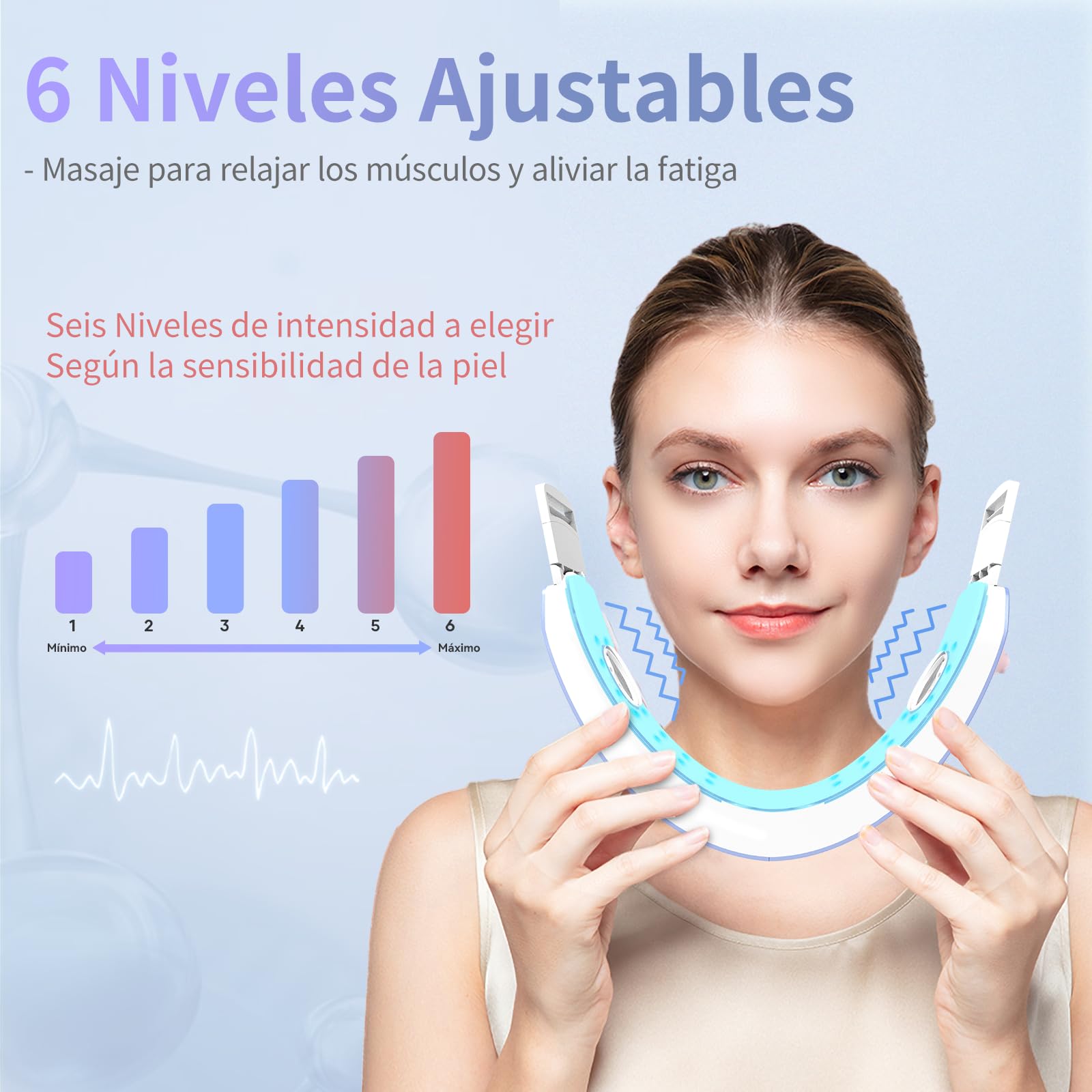 - Vibración de masaje ajustable de 9 niveles: Este instrumento de lifting facial ofrece 9 niveles de vibración ajustables. Masajeador facial 1-3: Masaje suave, adecuado para personas con piel sensible y estrato córneo delgado. Niveles 4-5: Adecuado para personas con músculos masticatorios prominentes y papada; se recomienda su uso durante 3-5 semanas. Niveles 6-8: Adecuado para personas con mandíbulas anchas y músculos tensos; se recomienda su uso durante 3 meses. La vibración del masaje ayuda a relajar los músculos y aliviar la fatiga.