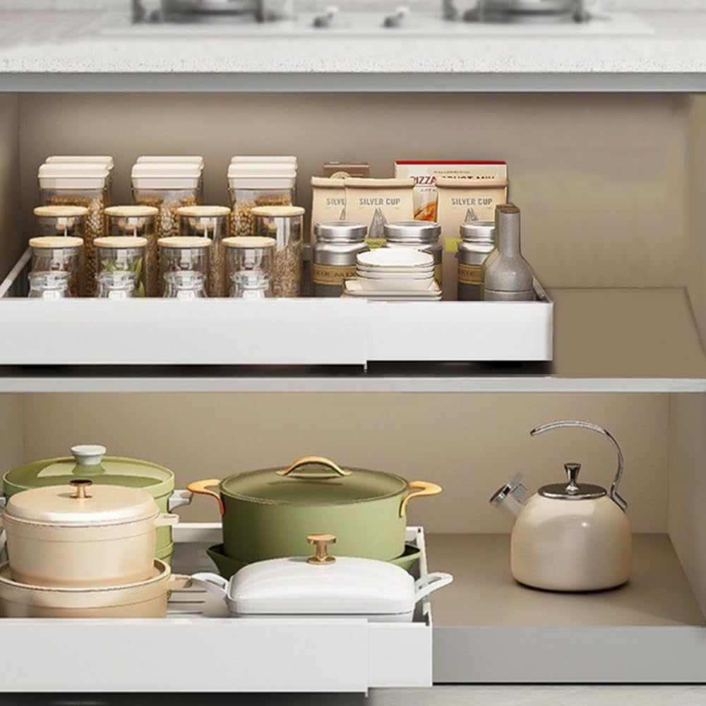 🏋️♂️ Duradero y eficiente en espacio: Fabricado en acero al carbono de alta calidad, este cajón telescópico está diseñado para durar y optimizar el almacenamiento en tu cocina o armario.