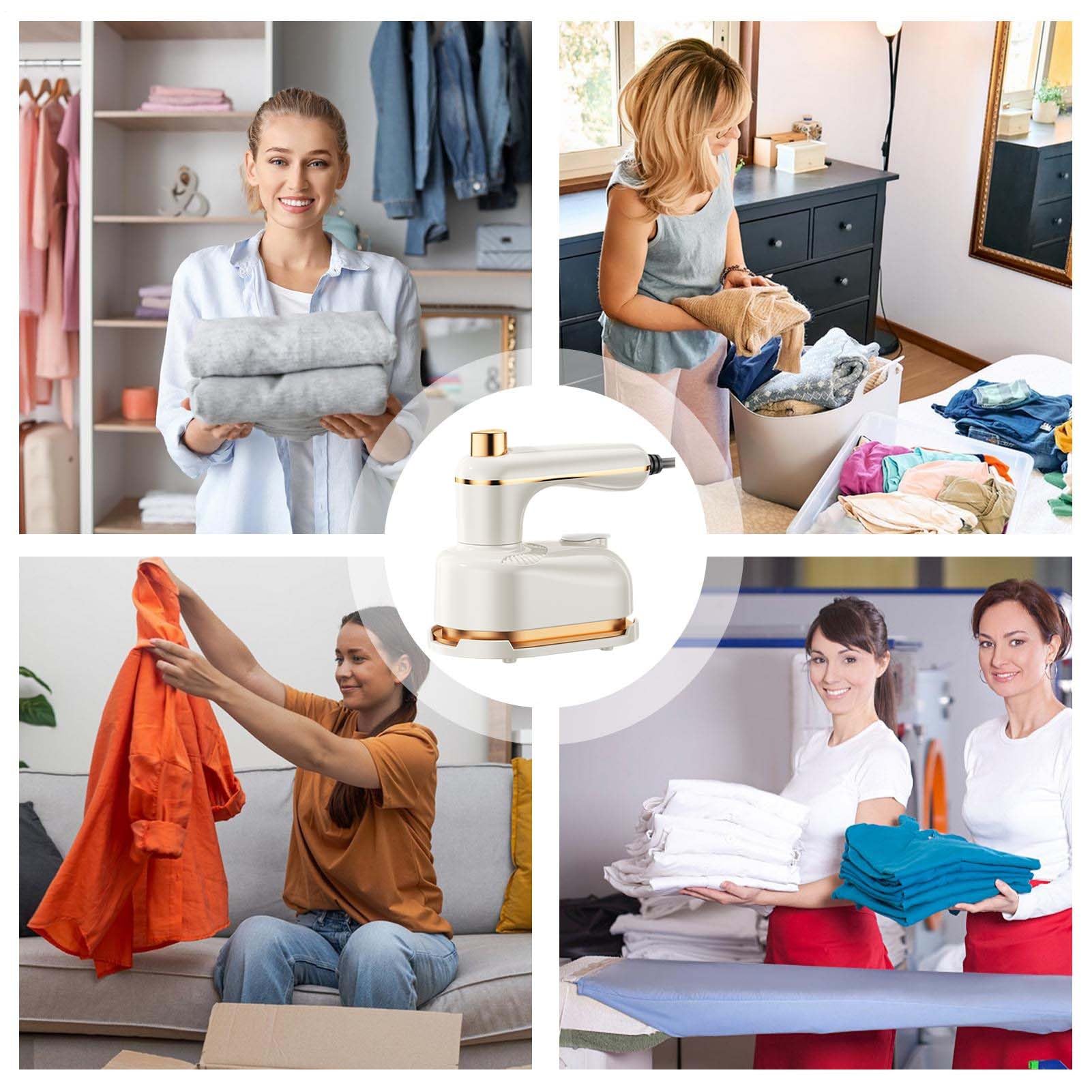 - Uso versátil: compacto y portátil para viajes o uso doméstico. Depósito extraíble de 100 ml con sistema de llenado sin fugas. Compatible con agua del grifo y agua desmineralizada. Función de prensado vertical ideal para cortinas y prendas colgantes.
