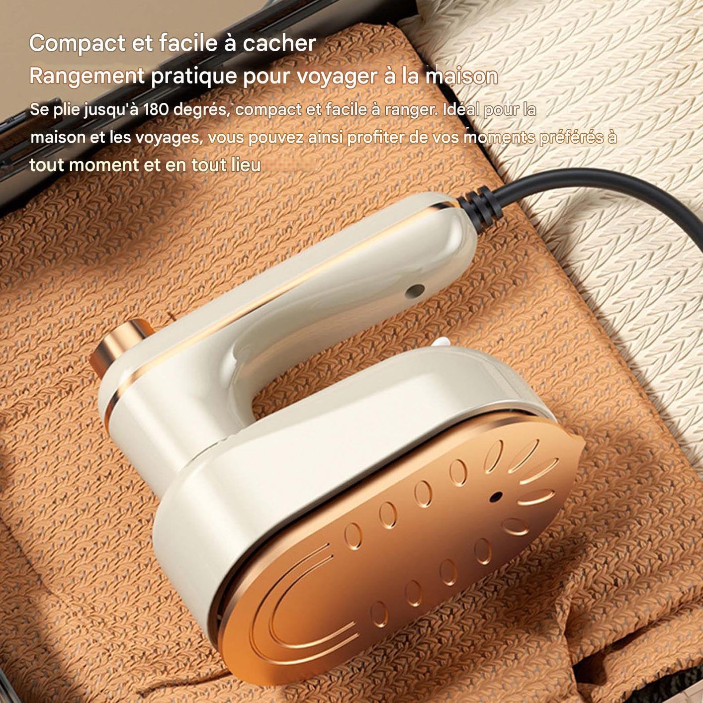 - Usos versátiles: Plancha de vapor portátil especialmente diseñada para viajes y espacios reducidos. Compatible con sector francés de 220 V y tensiones internacionales, sistema plegable giratorio para almacenamiento óptimo en armarios y dormitorios, funcionamiento silencioso adecuado para entornos domésticos y móviles.