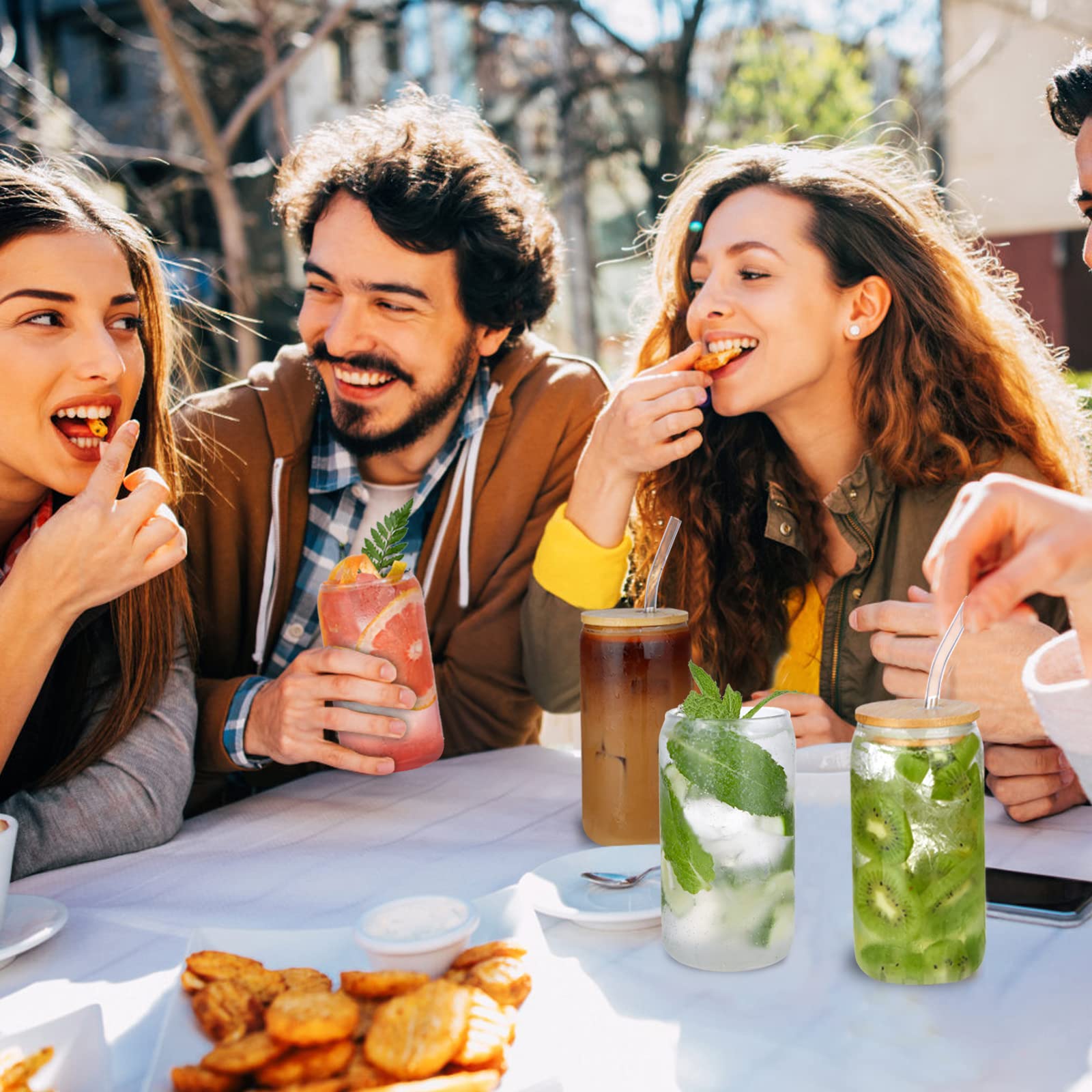 🥤 Set de Vasos de Vidrio con Tapa de Bambú y Pajita (16 oz – Set de 4)