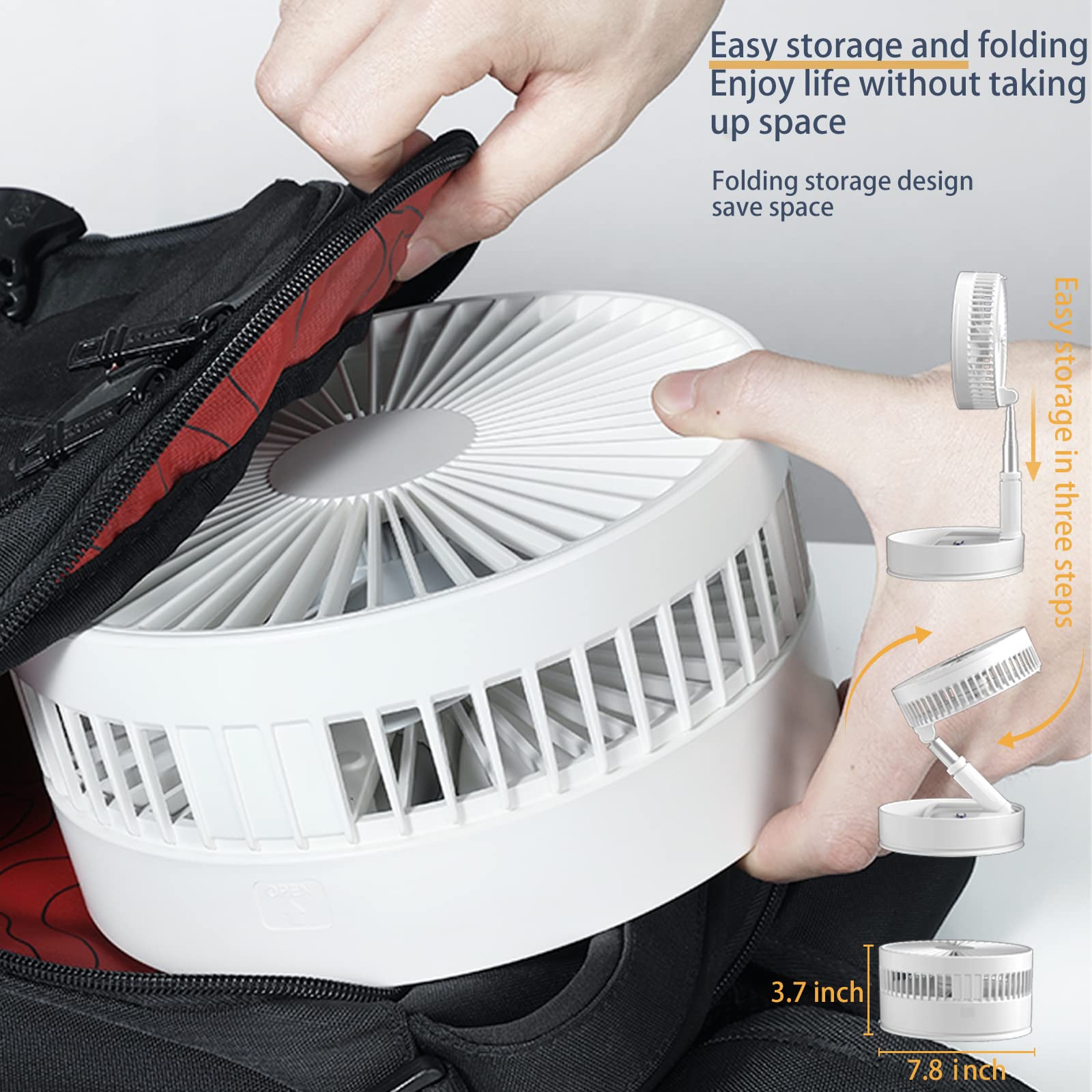 - Plegable para un fácil transporte y almacenamiento: innovador diseño plegable con 7.8 pulgadas de diámetro después de plegar. Fácil de almacenar, poner en la mochila o cajón, y perfecto para dormitorio, sala de estar, cocina, jardín, oficina, aula, camping, viajes, pesca, etc. La parte inferior de la base está diseñada con almohadillas de silicona antideslizantes para hacer que el ventilador sea más estable, y la rejilla frontal es extraíble para la limpieza, para que puedas disfrutar de una brisa natural saludable y fresca en todo momento