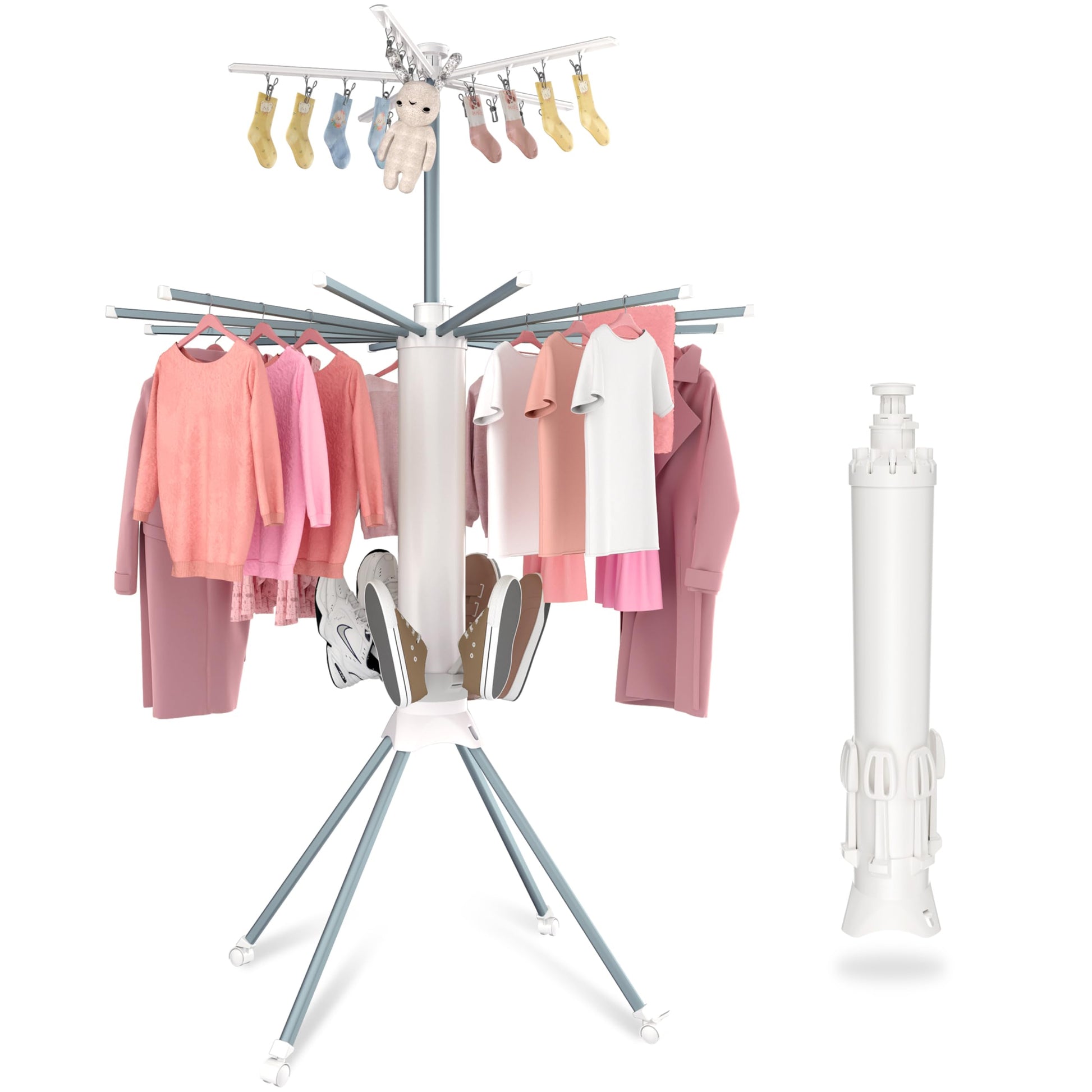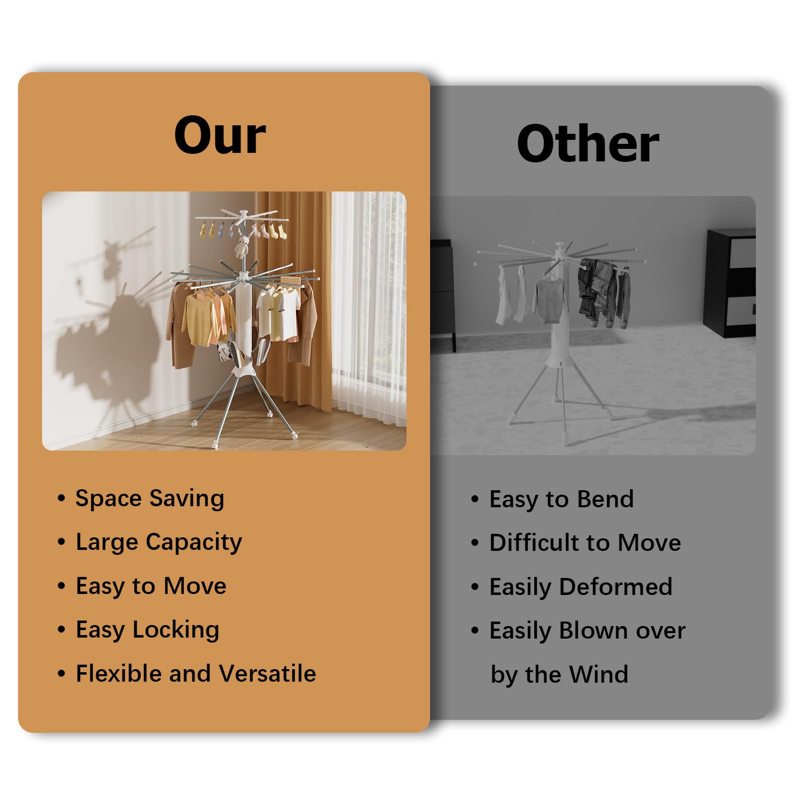 - Tendedero multifuncional: el tendedero de torre está equipado con un tendedero extraíble. Puedes sacar parte de la tendedero según sea necesario y ajustar el tendedero para que puedas responder de forma flexible a las necesidades de diferentes rincones de tu casa, te ofrece la máxima flexibilidad, soporte para secadora de ropa sin importar dónde quieras secar tu ropa