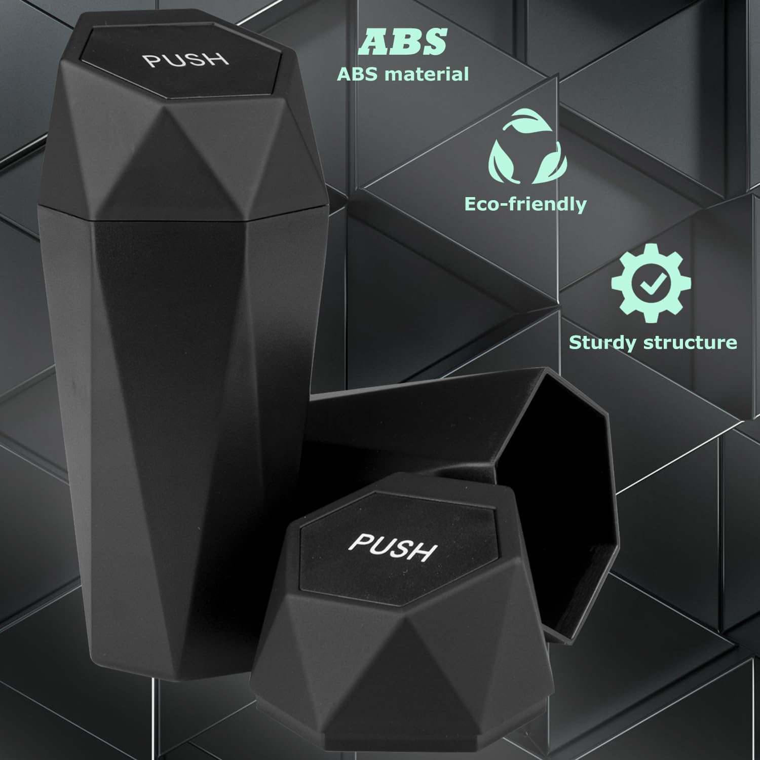 - 【Diseño a prueba de fugas】El basurero cuenta con una tapa con rebote automático. Simplemente empújelo hacia abajo para introducir la basura y rebotará para retener los residuos y los olores al instante. Este pequeño basurero para coche mantiene su coche limpio y ordenado.