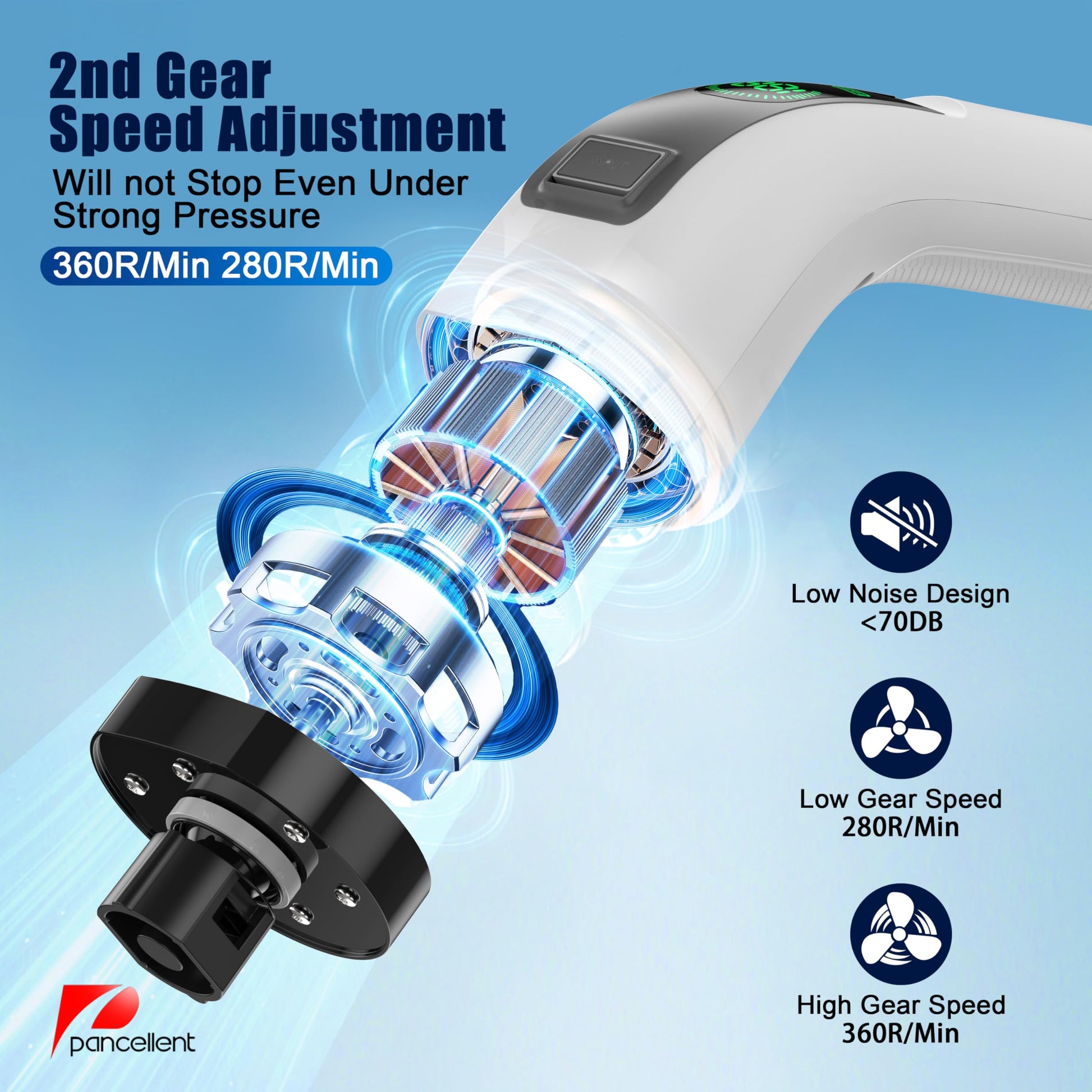 - Carga rápida, inalámbrica y duradera: tecnología de carga rápida y función de visualización de nivel de batería. El limpiador inalámbrico motorizado funciona con una batería de litio recargable integrada de 2500 mAh que puede proporcionar 100 minutos de trabajo a largo plazo después de solo 3-4 horas de carga rápida.
