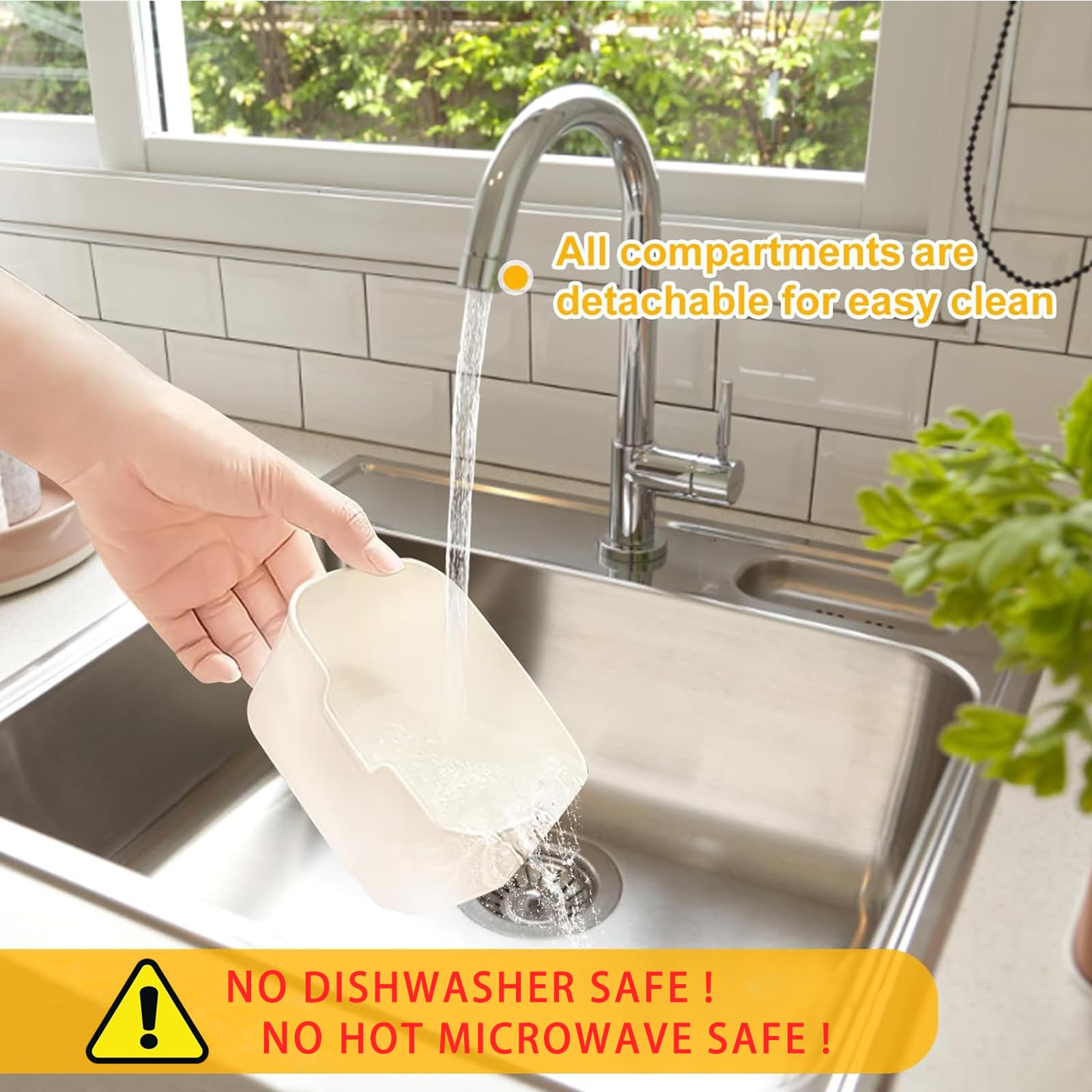 - Hermético: bandeja dividida para aperitivos con tapa, anillo de sellado en la tapa combinado con cierres de hebillas que garantizan la estanqueidad para mantener los alimentos frescos y mantener tus alimentos alejados del aire y el polvo.