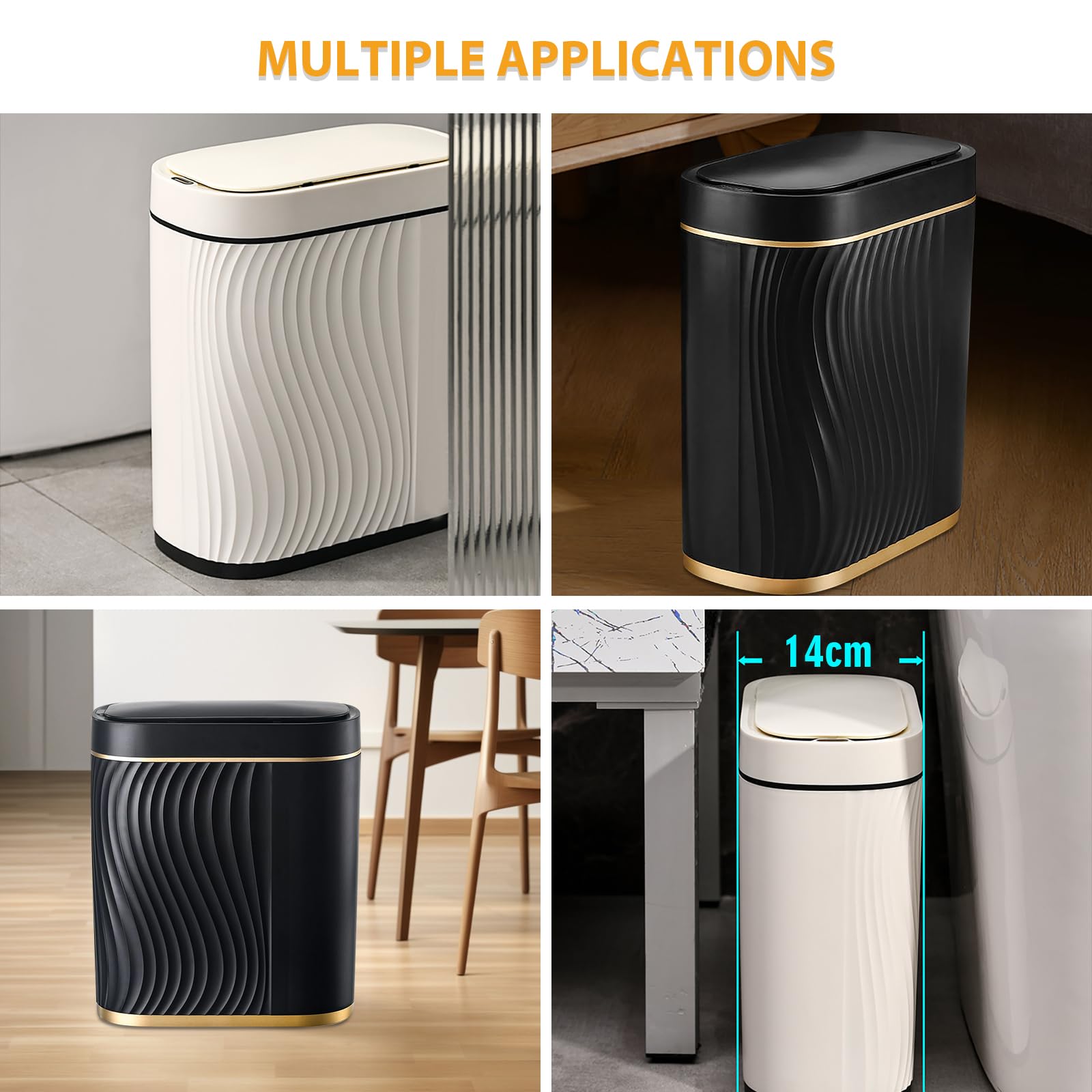 Detalles: Papelera Baño, Cubo de Basura Inteligente, 8L Cubo Basura Estrecho sin Contacto, Papelera con Tapa para Baños, Cocinas, Dormitorios, Oficinas