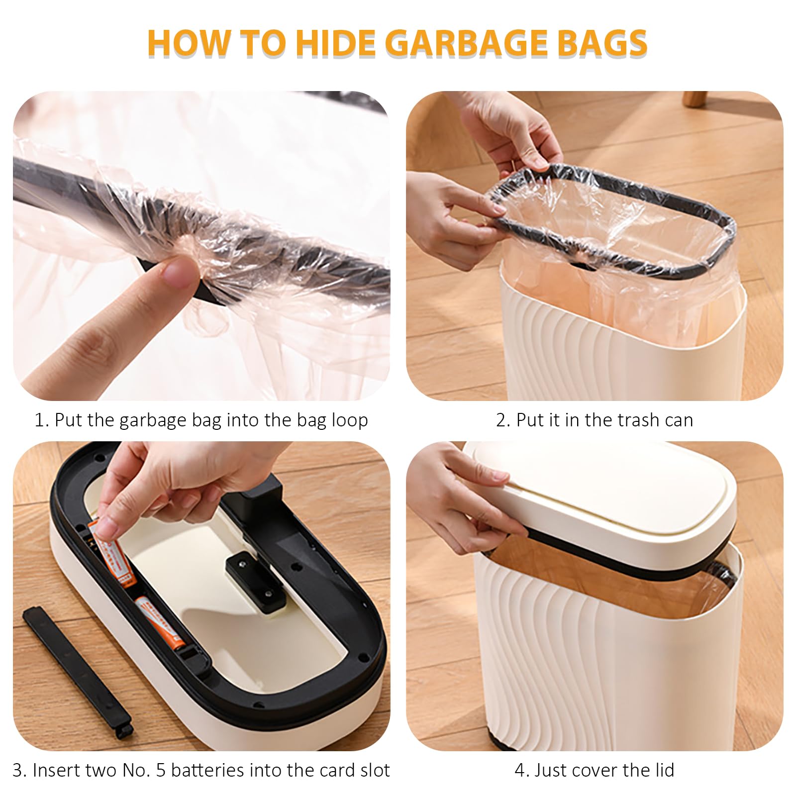 - DISEÑO ÚNICO — El basura automática tiene un diseño simple con un anillo de fijación interno, que puede ocultar perfectamente la bolsa de basura, simple y hermoso. La tapa está diseñada más herméticamente, mejorando el sellado y aislando eficazmente los olores. Es su cubo basura baño ideal. Esta papelera baño pequeña funciona con 2 pilas AA (no incluidas).