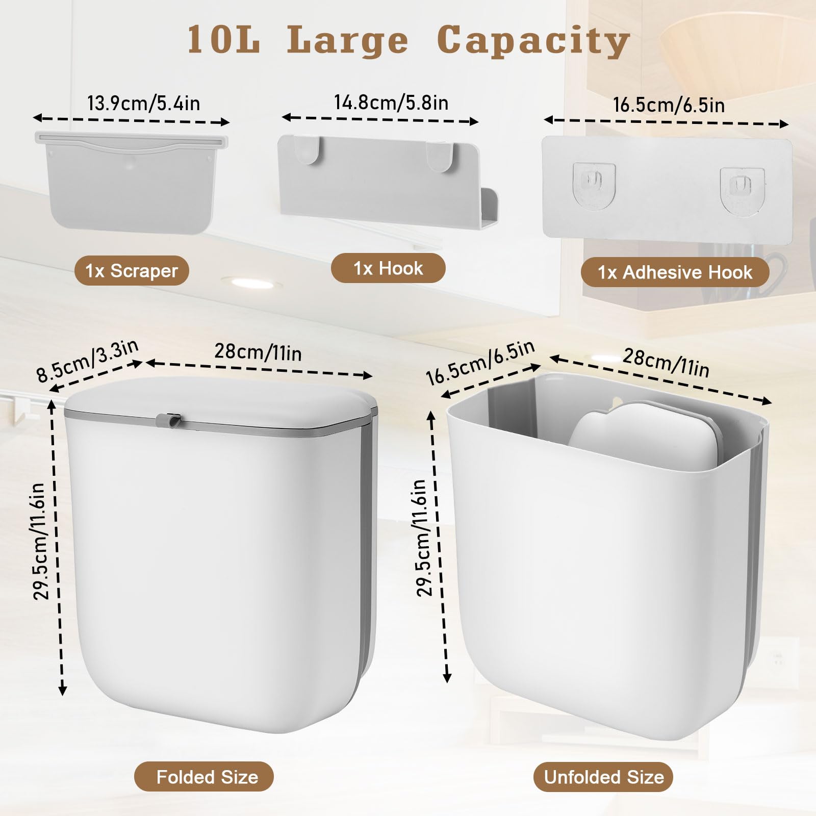 - 【Uso Versátil】Este pequeño cubo de basura colgante es muy flexible en sus escenarios de aplicación, no sólo es adecuado para la cocina, el baño, la sala de estar y la oficina, sino que también se puede utilizar en espacios al aire libre como el camping.