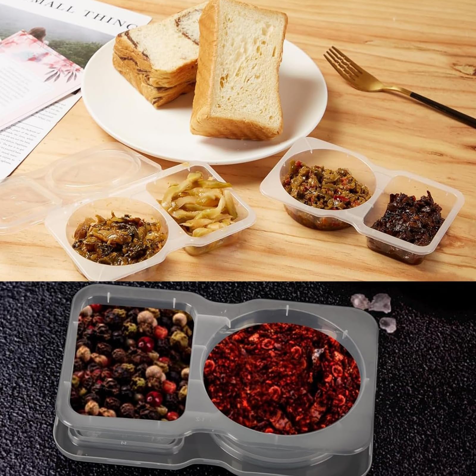 ¿Cansado de que tus snacks y salsas se mezclen? Este set de 20 contenedores reutilizables de doble compartimento es perfecto para llevar tus alimentos bien separados, frescos y sin derrames. Ideal para loncheras, meal prep, restaurantes o para tener en casa.