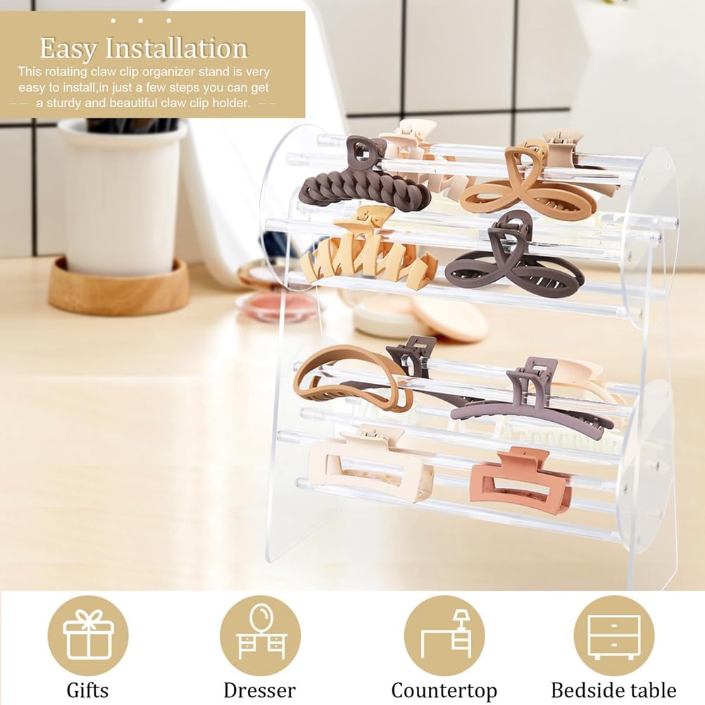 - Soporte de clip de garra transparente: nuestro soporte de exhibición con clip de garra giratorio de 360 grados está hecho de acrílico de primera calidad, transparente y duradero. El diseño minimalista proporciona un almacenamiento más conveniente para el clip de garra. También aporta un aspecto elegante y se exhibe en su habitación.