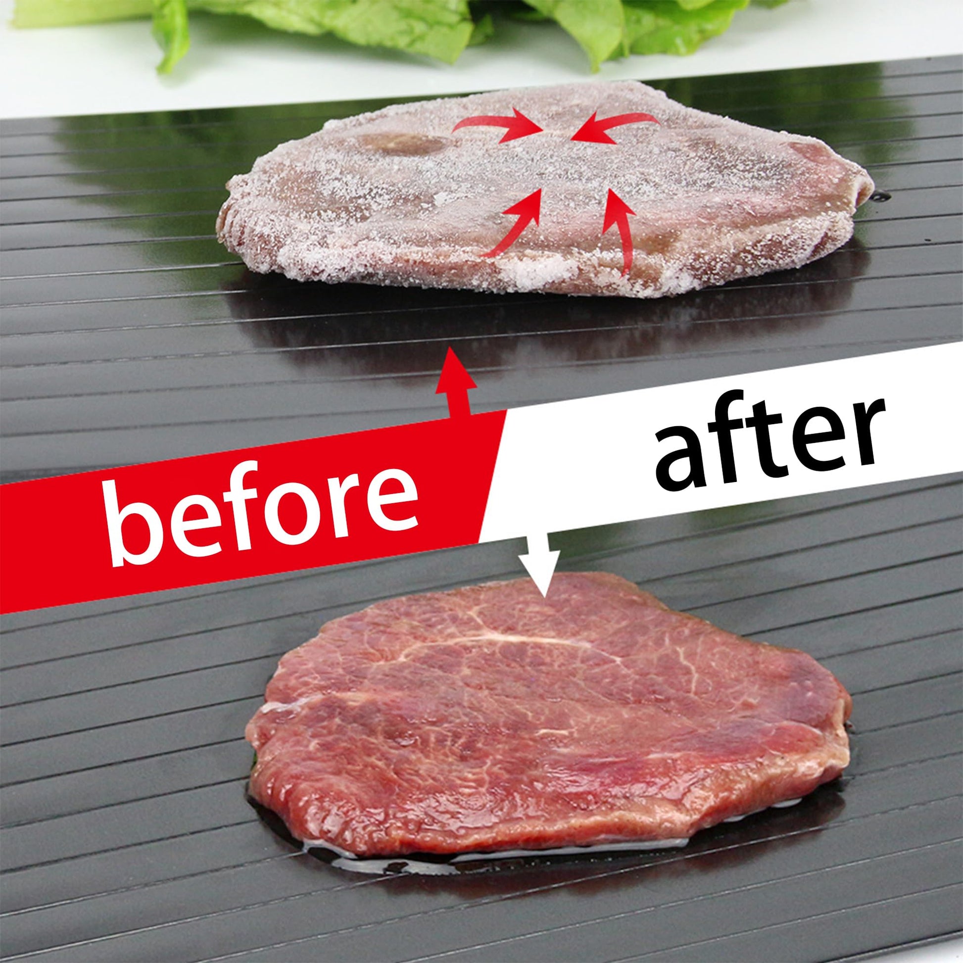 - 🥩 【Conveniente de usar】: fácil de usar, simplemente coloque su comida en el plato de descongelación y espere a que se descongele.